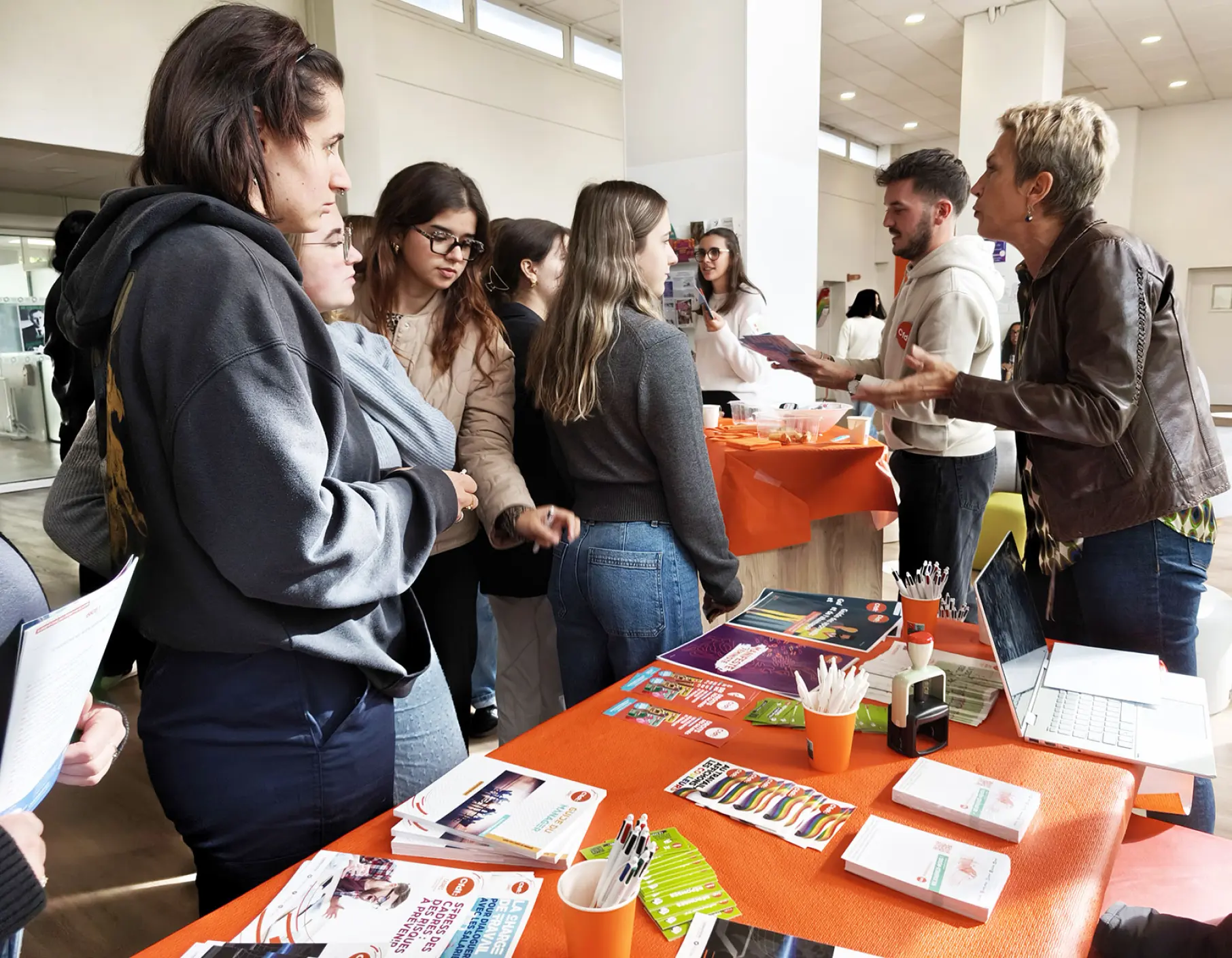 Les étudiant·es s’arrêtent devant le stand CFDT santé-sociaux, situé dans le hall d’accueil, où les militant·es CFDT leur expliquent le rôle d'un syndicat. « Les formateurs, qui déplorent le manque d’engagement de la jeunesse, trouvent que ça a du sens de parler syndicat aux étudiant·es, » ajoute Vincent.